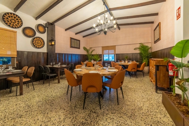 La iluminación juega un papel fundamental en esta experiencia. No solo ilumina, sino que acompaña, envuelve y define. Luces cálidas, lámparas con presencia, puntos estratégicos que resaltan materiales y crean atmósferas acogedoras. De día o de noche, el restaurante mantiene siempre esa sensación de confort tan necesaria para que el cliente se sienta a gusto.